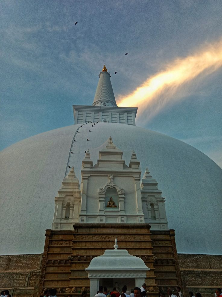 Engineering wonders consist of earthquake-resistant foundations that lead to the flow of Tissa Wewa water to lime plaster that will survive a monsoon. Its hemispherical perfection contributes to impermanence compared to Jetavanaramaya (third tallest ancient structure), and the hemispherical perfection is surrounded by statues four Buddha images and a Bodhisattva, which were restored by bhikkhu-led fundraisers, and crowned in 1940 and 2019.
